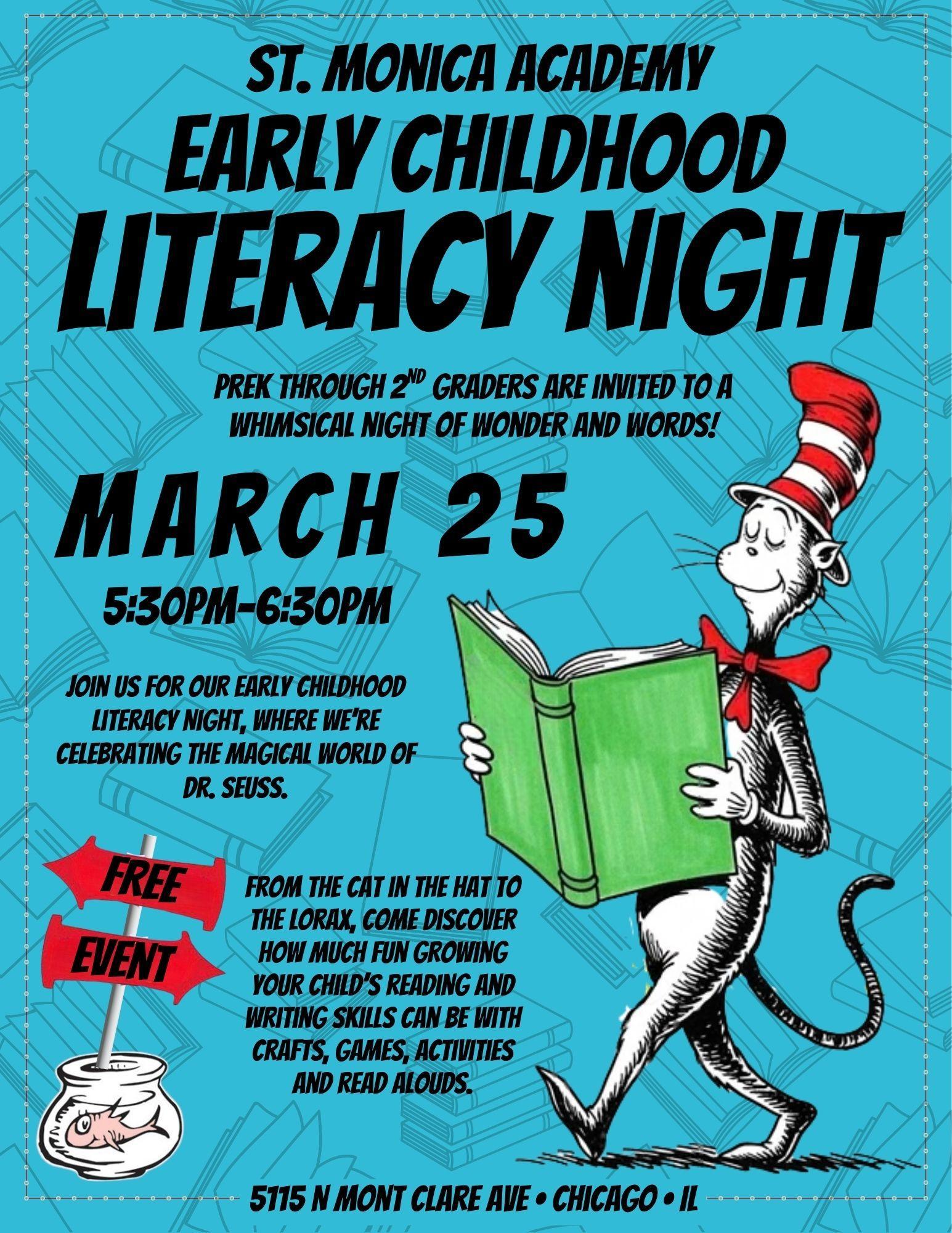 Wednesday, March 25th, SMA's Early Childhood team will be hosting a literacy night to celebrate the whimsical words of Dr. Suess.